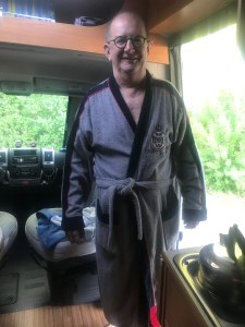 One thing we did want to follow is the dressing gown trend. You cant walk down the “dusche” in your undies. So off we went to the 2nd hand charity shop and were we amazed. Bonnie’s best buys were to be had! We bought a dressing gown for Christpher for €3.50, and then some real wine glasses for €0.50, what a barg! As we say AATB…(all about the boodget!)