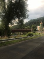 A wrong turn meant we approached the camp site from a very interesting direction. Over a wooden bridge. Just just wide enough to take the camper van. Chris was not impressed with me. We made it. The camp site called Na Spici was a disappointment. Not very clean, quite run down and the lady at the front desk was not helpful at all.