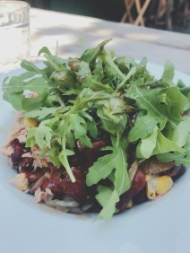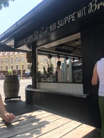 We set off and found ourselves really enjoying the ease of the city. Free wifi everywhere. The tram in the central area is free to tourists. The ice cream shops are on every corner and really what a pleasure to walk around and visit. On our walks we saw a great deal of more modern food , a change from the traditional coffee and cakes places but really quite hip. We found a stall that was selling plates of salad. A bit like a salad valley but much much better! The last was so sweet heaping our plate with extra when she saw we were sharing. Lovely wooden tables and flowers in pots. Sacking under your bum to cushion it and you eat your salad alfresco on the street.
