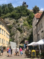 We took the tram to the castle. So you can walk the 260 steps or take the icy cool elevator In the mountain. Not wanting to deprive Graz of tourist revenue we paid the €1.50 each and rode to the top in style. In our defense after exploring the grounds we walked down the 260 steps. The view from the top magnificent.