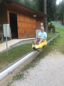 We caught site of an attraction that looks like tobogganing and now we walking along looking for it. I’m not really sure but Chris looks like he wants to try and I’m always keen for excitement. We buy our tickets and then the queue. Again in one day Chris holds it together just long enough for us to get to the front. A ski lift up and then a thrilling luge ride down! Turns out Chris was going much faster than I was!