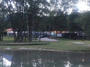 Anyway lets not dwell on that…so its quite late and we need to get to the camp. We chose one next to a lake in Northern Italy. As you all know Tom Tom was re-programmed and we are following along gaily to her instructions hoping we don’t get there and its full. We turn down the road and she announces, your destination is on the left. In we go and I jump out to ask if they have a space. The Italian gentleman nods his head vigorously and whisks away our passports ( we find in Italian camp sites , they take your passports until you leave and settle the bill). He asks us to pay straightaway as we are only staying one night. He tells us to find a spot, looks at us in disgust when we ask for wifi password. We find a nice spot and set up and off we go to do our evening explore of the camp site.