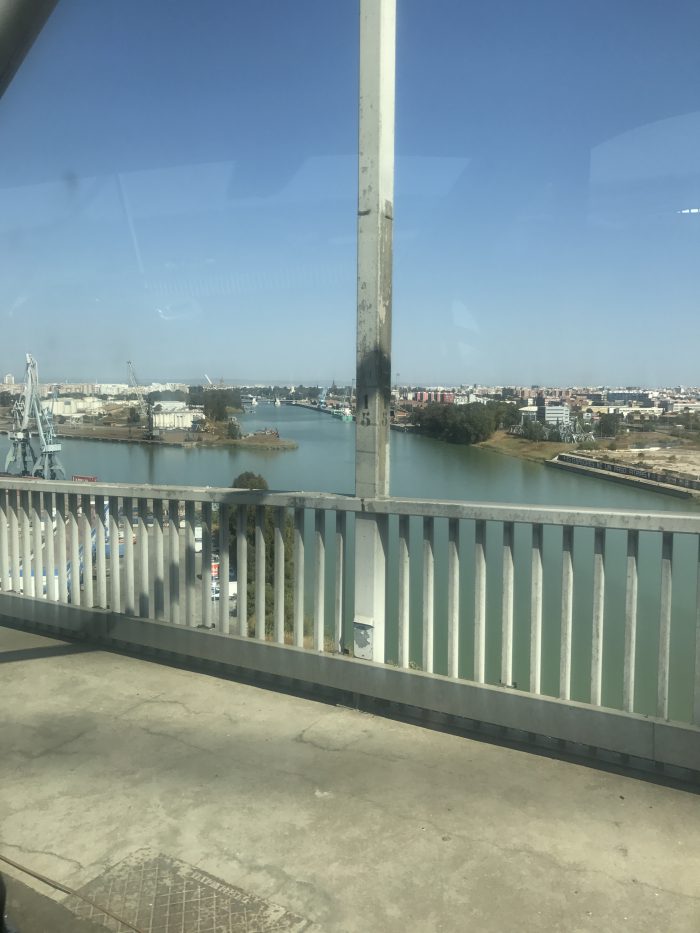 We had struggled to find a decent camp site close enough to Seville. Chris checked park4night.com and found a parking which said it was on the bus route to Sevilla. The gps co-ords of these places are sometimes a little dodgy so it did take us 2 rounds to find it but when we did …wow! Chris had done us proud. It was a camper stop(aire) in a small port on the Guadalquivir river about 15 min on the bus from Sevilla centre. Did you know that :Sevilla was once the capital of Spain and the richest city in Europe , it is still the 4th largest city in Spain? Although it looks to be far from the sea, it actually has a harbour , located 80km from the the Atlantic Ocean and is the only river port in Spain?