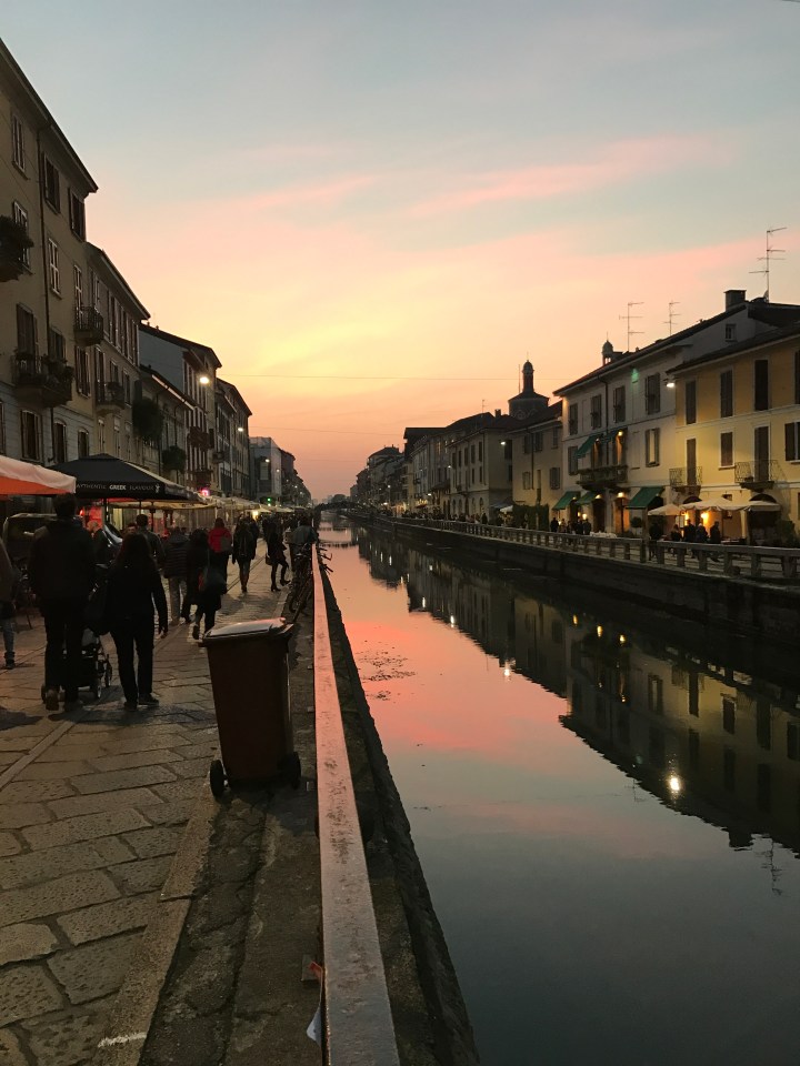 We had found a lovely Airbnb spot in Milan. We use AirBNB all the time, and we have never had a problem. So this little attic apartment was on the Naviglio Grande Canal. The area is very vibey with lots of bars and restaurants and you know its all about the food for us. What we love as well is aperitivo time. Yes this city also celebrates this tradition. Remember we told you about in in Bologna (click to read that post) We walked along the canals and all the bars are all touting their offering. The sun setting over the canals is awesome, the light in Italy is just something else. No wonder the great paint masters loved to paint there. We spent the evening eating, drinking and wandering the streets people watching. Its the best way to experience the city.