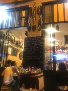 Dinner with the gang on Friday night was at a popular eatery called Taberna Santo António which we had made a booking for… no ways we were getting in otherwise. I don’t think everyone felt the meal was outstanding but I had pork cheeks and I definitely think I might a good choice. It was so damn hot though and we eventually had to move to a table outside to eat dessert. Dessert was a magnificent chocolate mousse and a house speciality, it was very worth the calories.