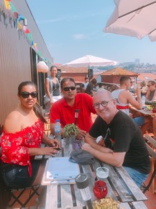 After the boat trip, we walked to a rooftop bar that our clever friend Michael had found. It was called Mirajazz and it served drinks and petiscos ( tapas or snacks). We spent a good couple of hours drinking ice cold rosé ( well the girls did ) and eating a lovely platter of aged cheese, meat and bruschetta with tomato.