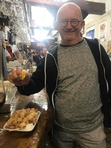 Chris squeezing his lemon..Calle Laurel, Logroño Share this please to make us happy: Share on X (Opens in new window) X Share on WhatsApp (Opens in new window) WhatsApp Share on Pinterest (Opens in new window) Pinterest Print (Opens in new window) Print More Email a link to a friend (Opens in new window) Email Share on Facebook (Opens in new window) Facebook Like Loading...